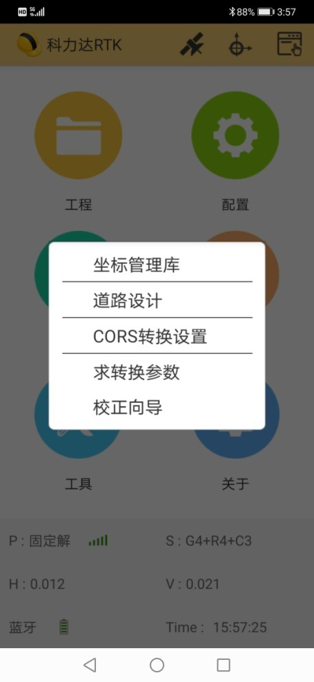 南方RTK求轉(zhuǎn)換參數(shù)詳解和七點(diǎn)注意事項(xiàng)!求轉(zhuǎn)換參數(shù)操作 通常情況下,科力達(dá)工程之星直接輸出的坐標(biāo)為WGS84坐標(biāo),即經(jīng)緯度坐標(biāo)也稱原始坐標(biāo),這與我們已知的平面坐標(biāo)即圖紙坐標(biāo)是不處于同一坐標(biāo)系下的,這就要求我們?cè)谑┕ぷ鳂I(yè)前對(duì)手簿中的坐標(biāo)系進(jìn)行一次轉(zhuǎn)換。 1、首先我們需要獲取已知點(diǎn)的經(jīng)緯度坐標(biāo),點(diǎn)擊“測(cè)量”菜單,選擇菜單下的“點(diǎn)測(cè)量”,將移動(dòng)站對(duì)中桿置于第一個(gè)控制點(diǎn)上,保持氣泡居中,注意采集坐標(biāo)時(shí),儀器必須為固定解。