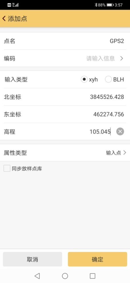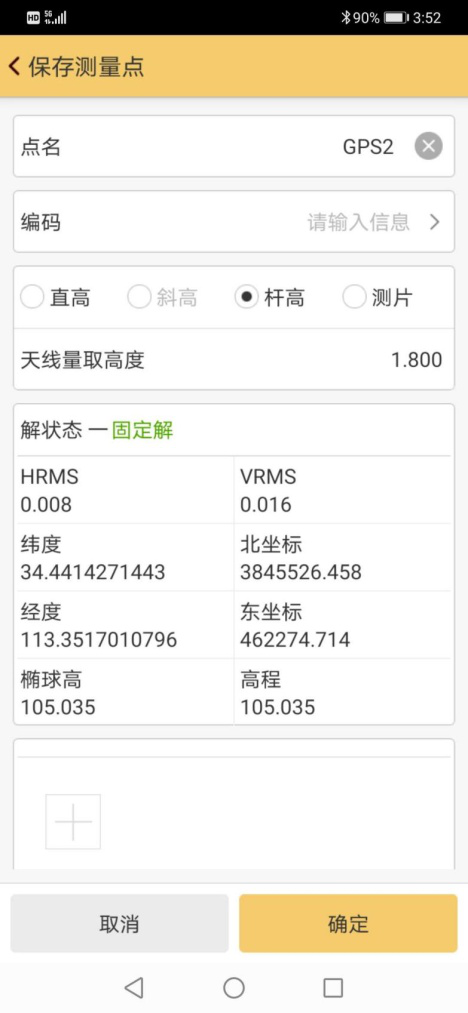 4、重復(fù)上述步驟,我們平滑采集第二個(gè)已知點(diǎn)坐標(biāo),然后輸入點(diǎn)名和天線量取高度,點(diǎn)擊“確定”。