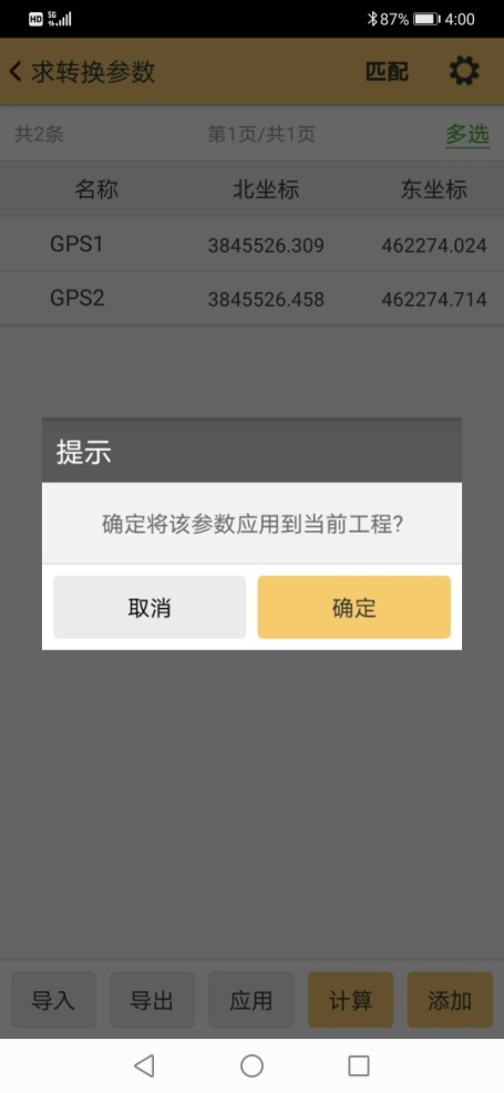 這里我們計(jì)算出的比例尺符合要求,點(diǎn)擊“確定”。 13、點(diǎn)擊“應(yīng)用”。會(huì)彈出對(duì)話框,直接點(diǎn)擊“確定”,此時(shí)計(jì)算出的參數(shù)已經(jīng)應(yīng)用到當(dāng)前工程了。我們可以在第三個(gè)已知點(diǎn)上復(fù)合一下坐標(biāo),核對(duì)無誤后就可以進(jìn)行施工作業(yè)了。
